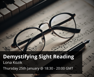 Don’t miss pianist, composer and teacher Lona Kozik’s online presentation on how to become an excellent sight reader on 25th January 2024. Lona will show you five key skills that can be applied from beginner to advanced levels to improve your sight reading and ability to learn pieces faster.